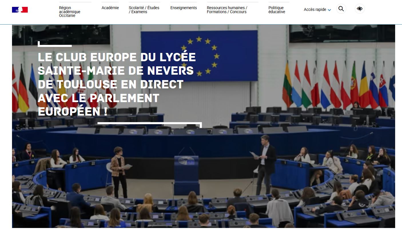 On parle de nous sur le site du Rectorat ! Félicitations aux 9 élèves du Club Europe ! Après leur participation à une session EUROSCOLA au Parlement européen, un article vient d’être publié dans la rubrique “En direct des écoles et établissements” sur le site du Rectorat. Le lien ! Retour aux actualités